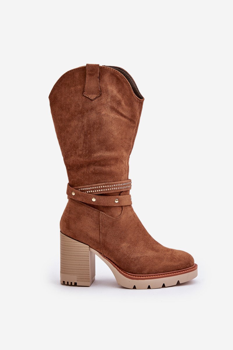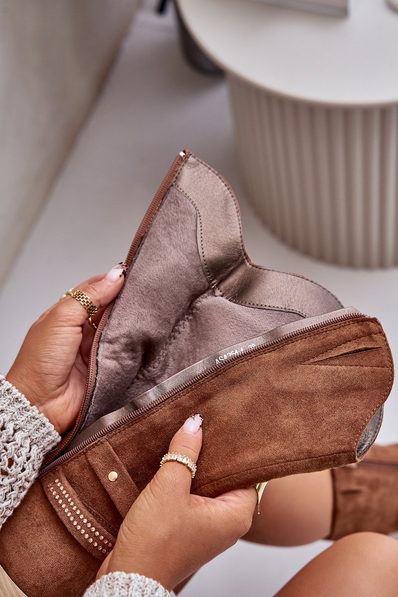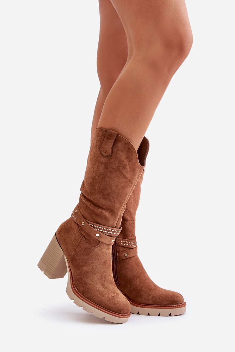 Gražūs moteriški auliniai batai, prekės ženklo Jezzi. Pagaminti iš minkšto eko zomšo. Įmontuoti ant stabilaus stulpelio formos kulno, užtikrina patogumą dėvint visą dieną. Modelis užsegamas užtrauktuku. Vidus apšiltintas avalynės paklode. Batviršį puošia du persipynę dirželiai. Rinkdamiesi dydį, prašome vadovautis dydžių lentele.