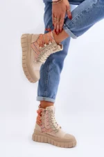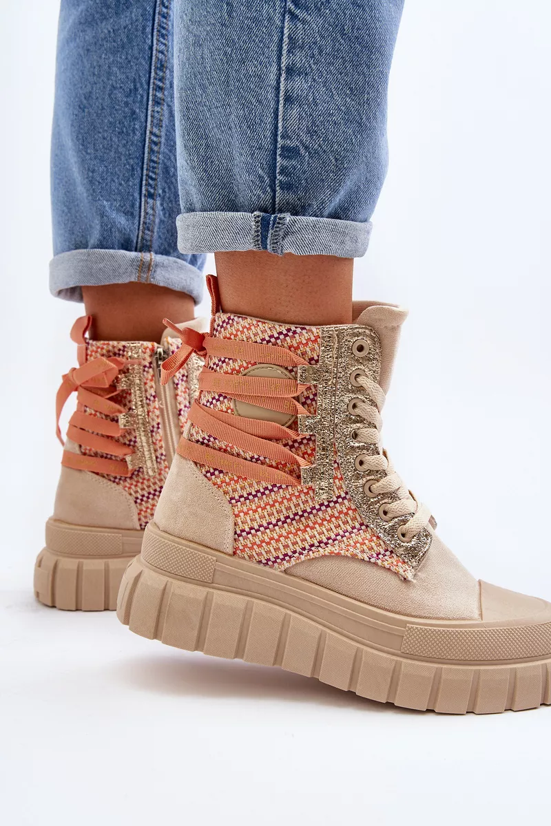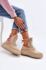 Aukšti velouriniai kedai Beige Eleamia išsiskiria ne tik moderniu dizainu, bet ir praktiškomis detalėmis. Masinė platforma ir dvigubos raištelės suteikia sportiškumo ir stilingumo, užtikrindamos ilgaamžiškumą. Papildomas užtrauktukas palengvina avalynės užsidėjimą.