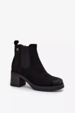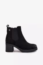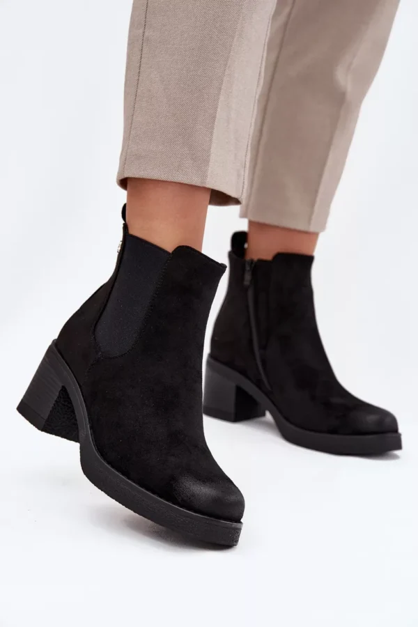 Moteriški aulinukai pagaminti iš eko zomšo. Įleisti ant stulpelio formos kulno, kuris užtikrina stabilumą ir komfortą visą dieną. Paminkštinti, garantuoja šilumą vėsesnėmis dienomis, o užtrauktukas palengvina užsidėjimą. Batviršio šone yra subtilus, auksinis akcentas, suteikiantis jiems elegantiškumo. Puikiai tinka kasdienėms stilizacijoms, kurios reikalauja patogumo ir madingos išvaizdos. Rinkdamiesi dydį, prašome vadovautis dydžių lentele.