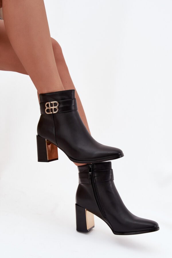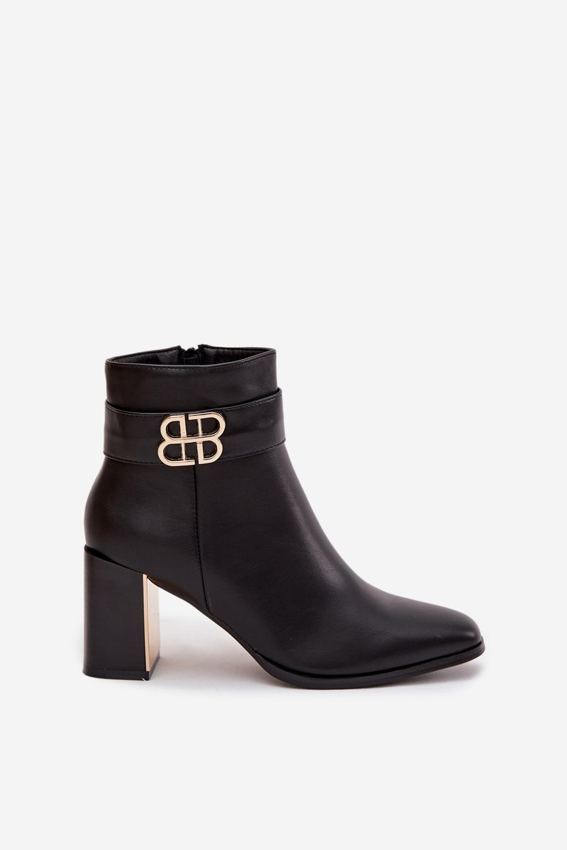 Moteriški aulinukai pagaminti iš eko odos. Modelis yra ant stabilaus, stulpelio formos, kulno, puošto auksiniu, veidrodiniu elementu, suteikiančiu visumai išskirtinumo. Batai užsegami užtrauktuku, kuris užtikrina patogų apsiavimą ir idealų prigludimą. Viršutinę auliuko dalį puošia dirželis su dekoratyviniu elementu, suteikiantis subtilų, stilingą akcentą. Tai universalūs aulinukai, puikiai tinkantys tiek elegantiškiems, tiek kasdieniams deriniams. Pasirinkdami dydį, prašome vadovautis dydžių lentele.
