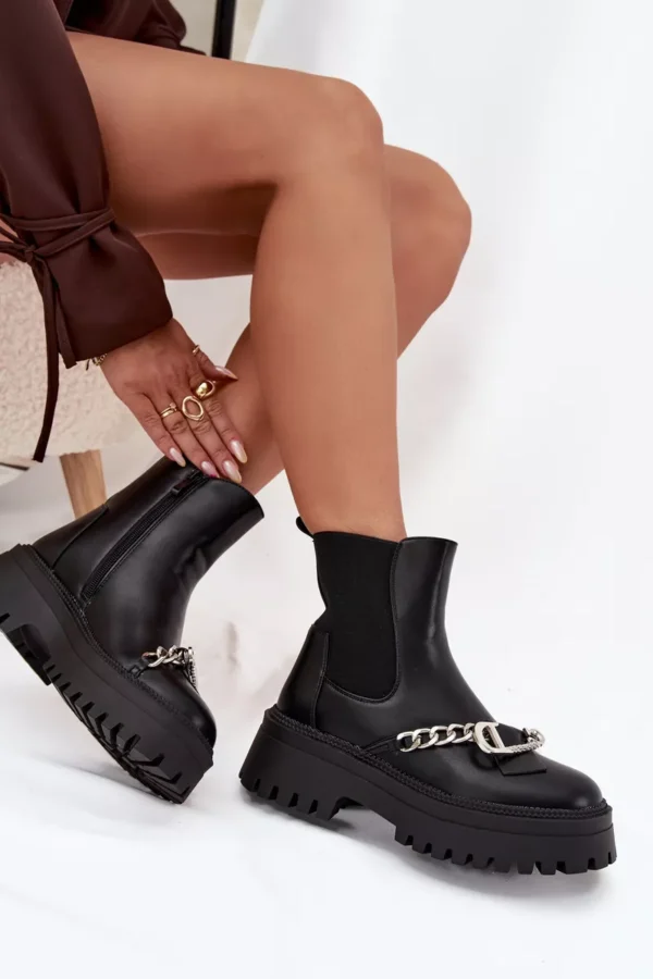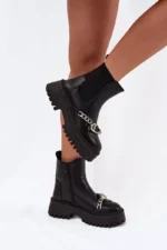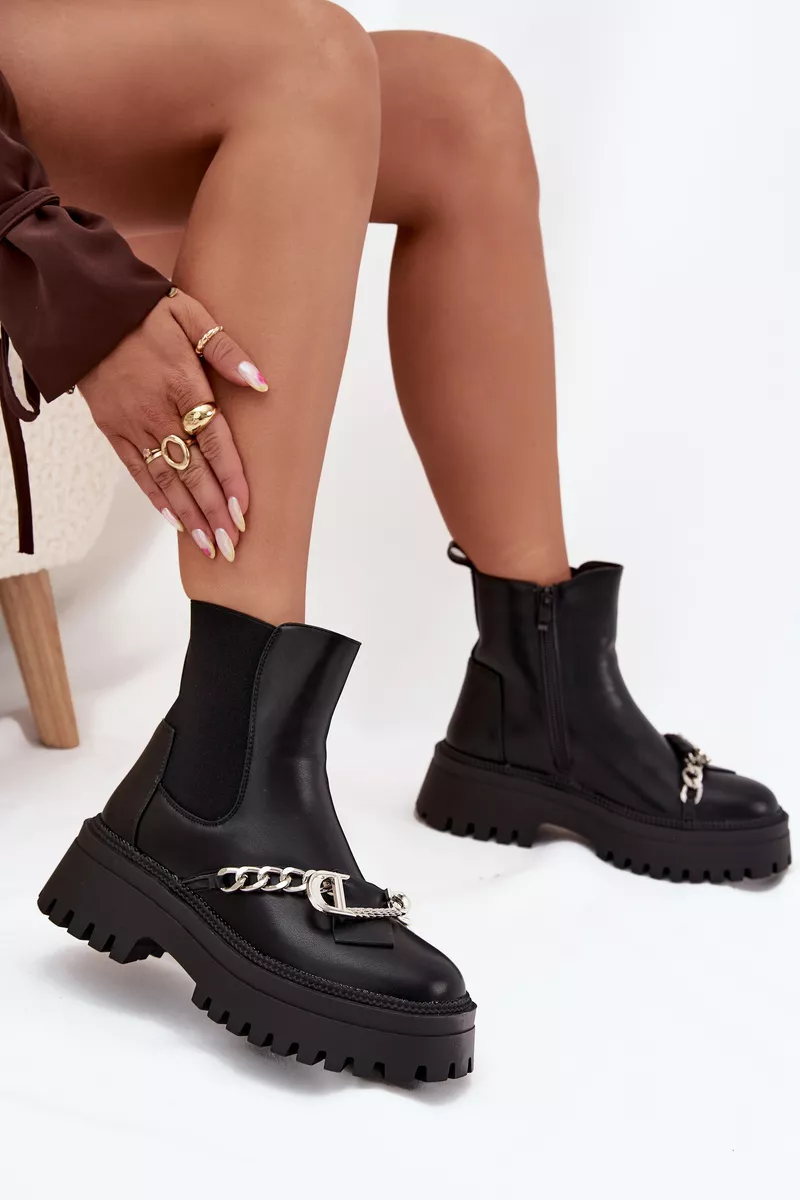 Moteriški eko odos aulinukai yra stilingas ir patogus pasirinkimas vėsesnėms dienoms. Platforminiai batai užtikrina patogumą ir stabilumą, o užapvalinti priekiai suteikia jiems subtilaus charakterio. Apatinė dalis, pašildyta kailiu, garantuoja šilumą, o dekoratyvinė grandinėlė ir sagės formos puošmena ant aulo suteikia jiems išskirtinę išvaizdą. Elastinga įsiūta pusė aulo šone palengvina apsiavimą, o užtrauktukas užtikrina patogų prigludimą. Puikiai tinka kasdieniam dėvėjimui. Pasirinkdami dydį, atsižvelkite į dydžių lentelę.