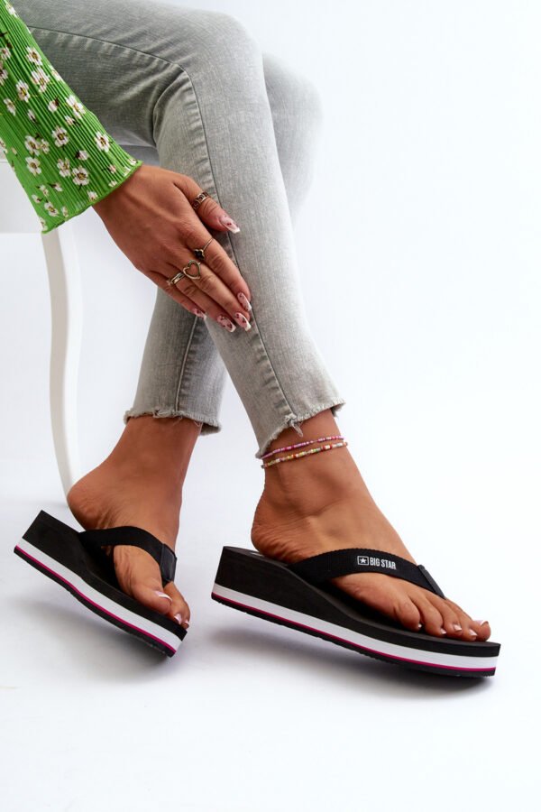 Puošnios dienos reikalauja patogių ir stilingų sprendimų! Patenkinkite savo komforto poreikius ir mados jausmą su Big Star moteriškomis šlepetėmis ant pleištų. Pagamintos iš minkštos putų medžiagos, jos užtikrina malonų ir lengvą žingsnį. Elegantiškas kulnas subtiliai prailgina figūrą, todėl tapsite visų akiratyje. Puikiai tinka kasdienai ar atostogoms prie jūros ir baseino.