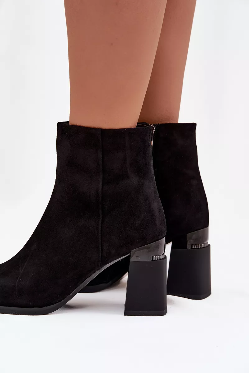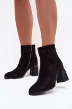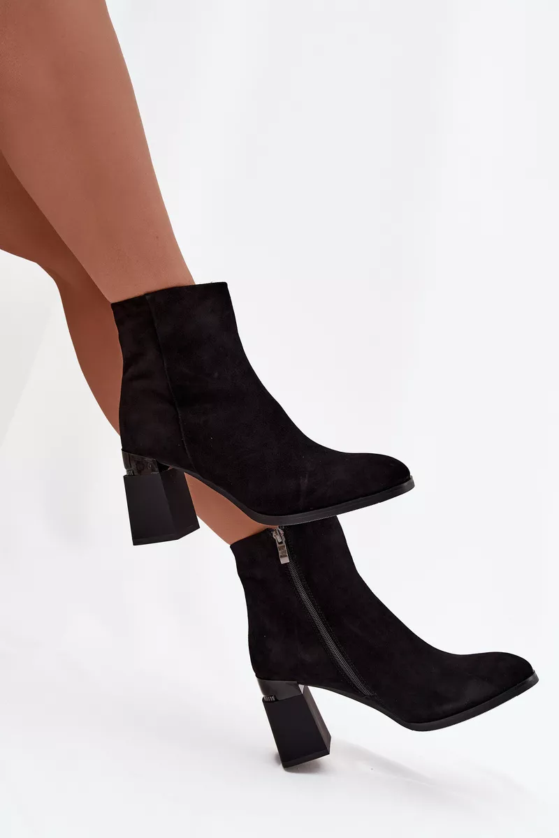 Šie moteriški odiniai batai iš natūralios zomšos yra puiki klasikinės elegancijos ir kasdienio komforto harmonija. Pagaminti iš aukštos kokybės medžiagos, jie suteikia stilingą išvaizdą, tinkančią įvairioms progoms. Modelis, sukurtas ant stabilaus kailio kulno, gražiai pabrėžia siluetą, tuo pačiu užtikrinant patogumą visą dieną. Šie batai turi praktišką užtrauktuką, kuris palengvina jų uždėjimą ir nuėmimą, o nežymiai užapvalinti smaigai sustiprina klasikinį įvaizdį. Vidus šildo šaltomis dienomis, todėl šis modelis yra idealus pasirinkimas rudenį ir žiemą.