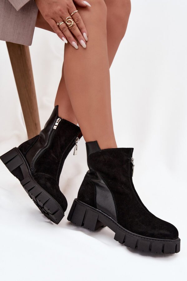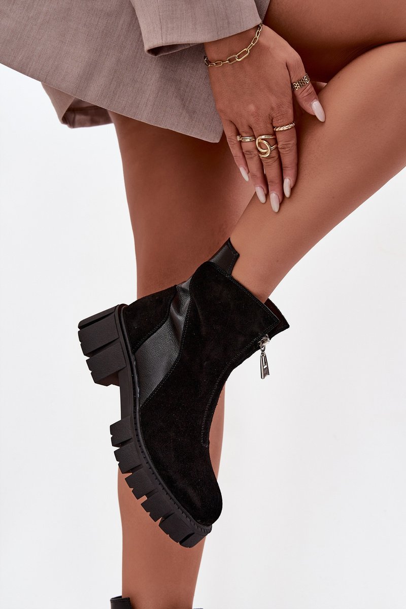 Stilingi moteriški natūralaus verstos odos aulinukai yra pasiūlymas moterims, vertinančioms eleganciją šiuolaikiniame leidinyje. Modelis ant masyvaus kaladės formos kulno garantuoja stabilumą ir patogumą, o apšildytas vidus daro batus idealiai tinkančius šaltesnėms dienoms. Šone esantis užtrauktukas palengvina apsiavimą, o dekoratyvus priekinis užtrauktukas suteikia visumai madingą, šiek tiek rokenrolišką charakterį. Apvalūs nosies galiukai pabrėžia klasikinį kirpimą. Tai universalūs aulinukai, kurie puikiai tiks kasdienėms stilizacijoms, taip pat ir elegantiškesniems deriniams. Renkantis dydį, prašome vadovautis dydžių lentele.