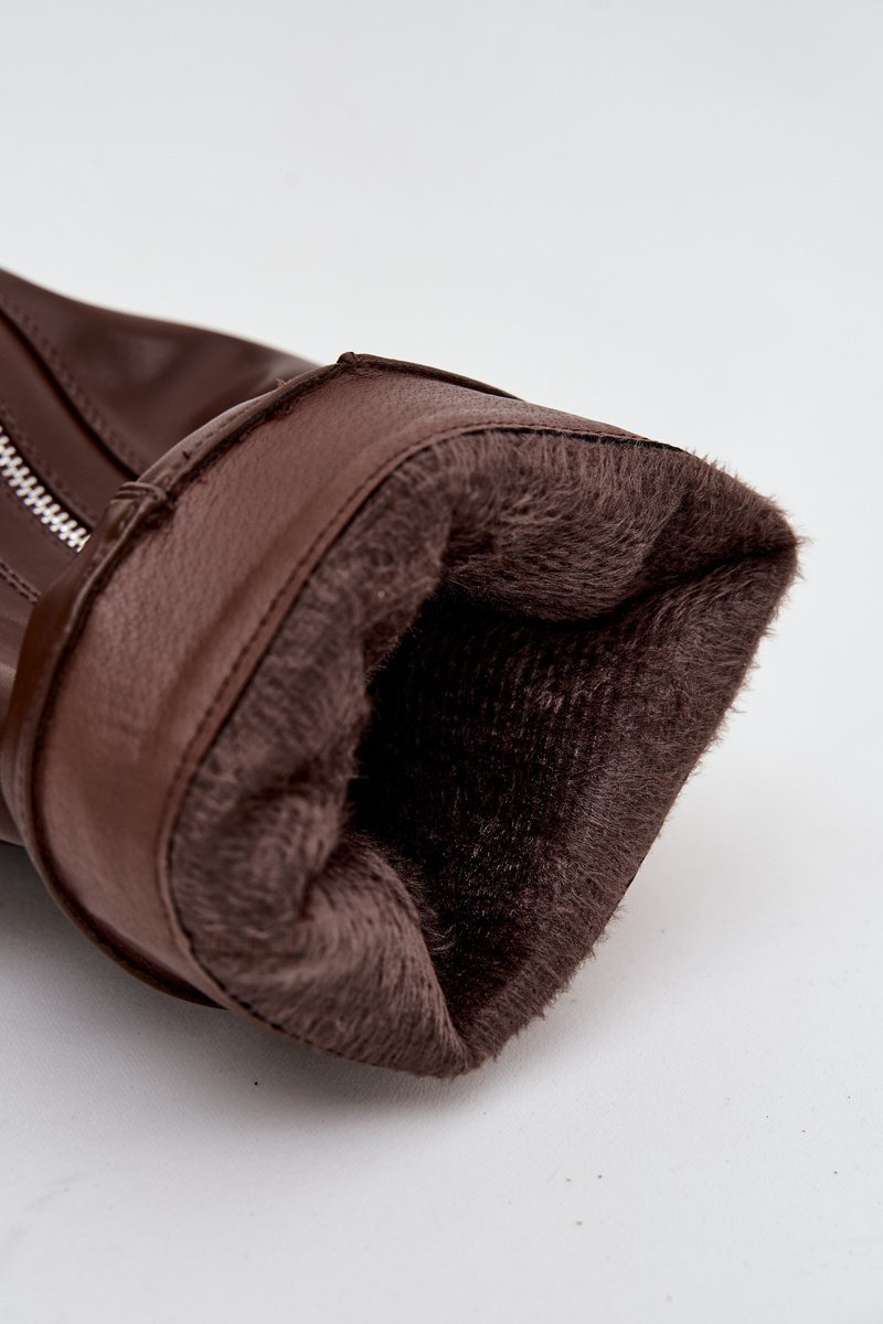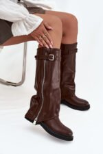Moteriški aulinukai su atverčiama blauzda yra tikras sezono ruduo-žiema hitas. Pagaminti iš eko odos. Įleisti ant plokščio kulno, tiks kasdieniam dėvėjimui, o dėl apšildymo avine vilna jie užtikrina komfortą ir šilumą šaltesnėmis dienomis. Praktiška, įsispiriama fasonas palengvina apsiavimą, o madingos detalės suteikia unikalaus charakterio – dirželis su sagtimi ant blauzdos viršaus ir sidabrinis užtrauktukas, kurį galima atsegti pagal jūsų pageidavimus, daro šį modelį originaliu ir stilingu aksesuaru. Tai aulinukai, kurie puikiai papildys tiek kasdienius derinius su kelnėmis ar leginsais, tiek moteriškesnes stilizacijas su suknele.