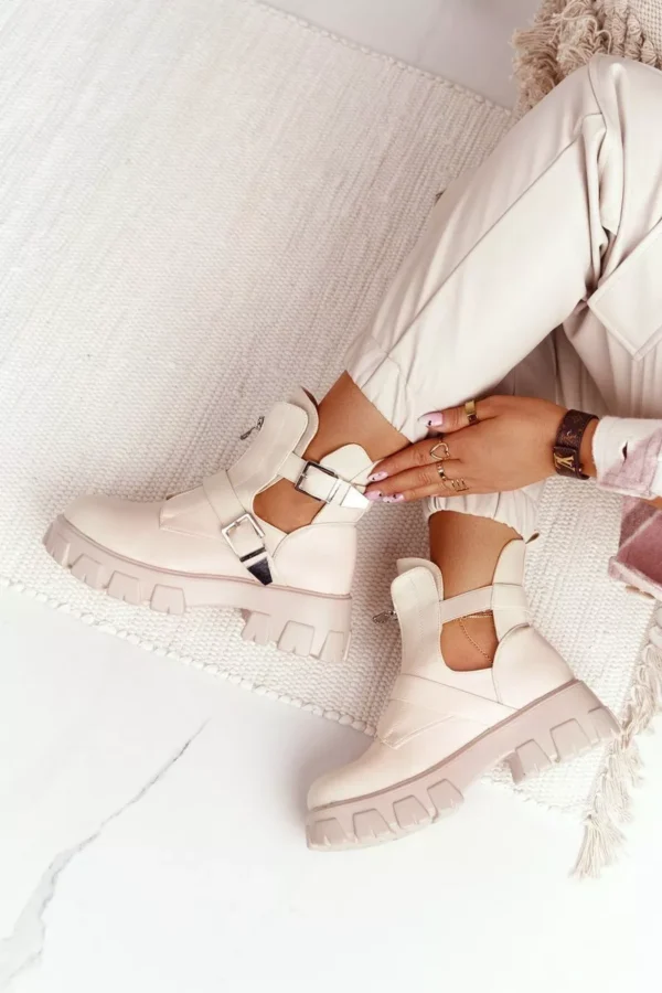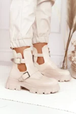 Unikalūs batai su iškirptėmis ir sagtimis ant storo platformos. Šie darbo batai pagaminti iš ekologiškos odos. Batai puikiai tiks glam roko ar grunge stiliaus aprangai. Renkantis dydį, prašome remtis dydžių lentele.