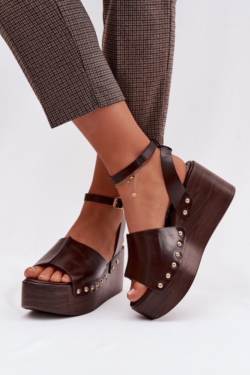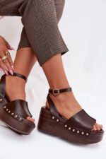 Stilingi moteriški ekologiškos odos sandalai derina patogumą ir įspūdingą išvaizdą. Platforma suteikia stabilumo ir patogumo, tuo pačiu subtiliai pabrėždama siluetą. Aplink kulkšnį užsegamas dirželis garantuoja gerą prigludimą ir stabilumą, o auksiniai kniedės šonuose suteikia visam bateliui madingą, akį traukiantį charakterį. Šie sandalai puikiai tinka vasaros aprangai. Renkantis dydį, prašome remtis dydžių lentele.