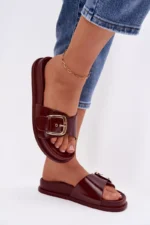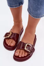 Damos sandalai su auksine sagtimi bordo spalvos “Rosivana” – tai stilingas pasirinkimas moteriai, kuri vertina ne tik eleganciją, bet ir patogumą. Šios basutės pagamintos iš ekologiškos odos, kuri užtikrina ne tik stilingą išvaizdą, bet ir atsakomybę gamtai. Auksinė sagtis pridės prabangos ir taps subtiliu akcentu, kuris puikiai derės tiek su kasdieninėmis, tiek su iškilmingomis vasaros aprangomis.
