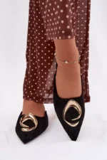 Auksinis akcentas priekyje yra ne tik akį traukiantis išvaizdos elementas, bet ir suteikia papildomą stiliaus detalių sluoksnį. Plokščias kulnas garantuoja, kad bet kurią dieną praleisite su patogumu, nesugadindami stiliaus. Šios galvutės yra pritaikytos tiek kasdieniam, tiek oficialiam stiliui, todėl tampa funkcionaliu ir universaliu pasirinkimu.