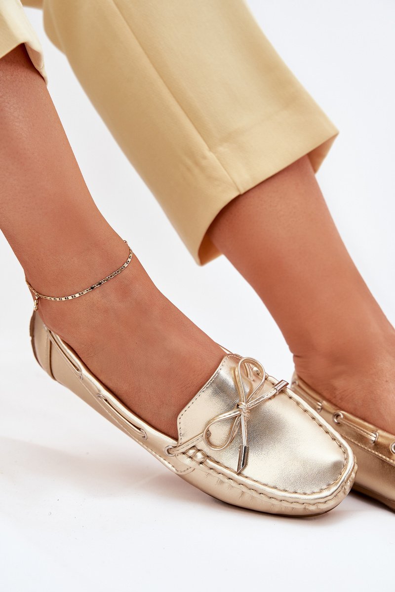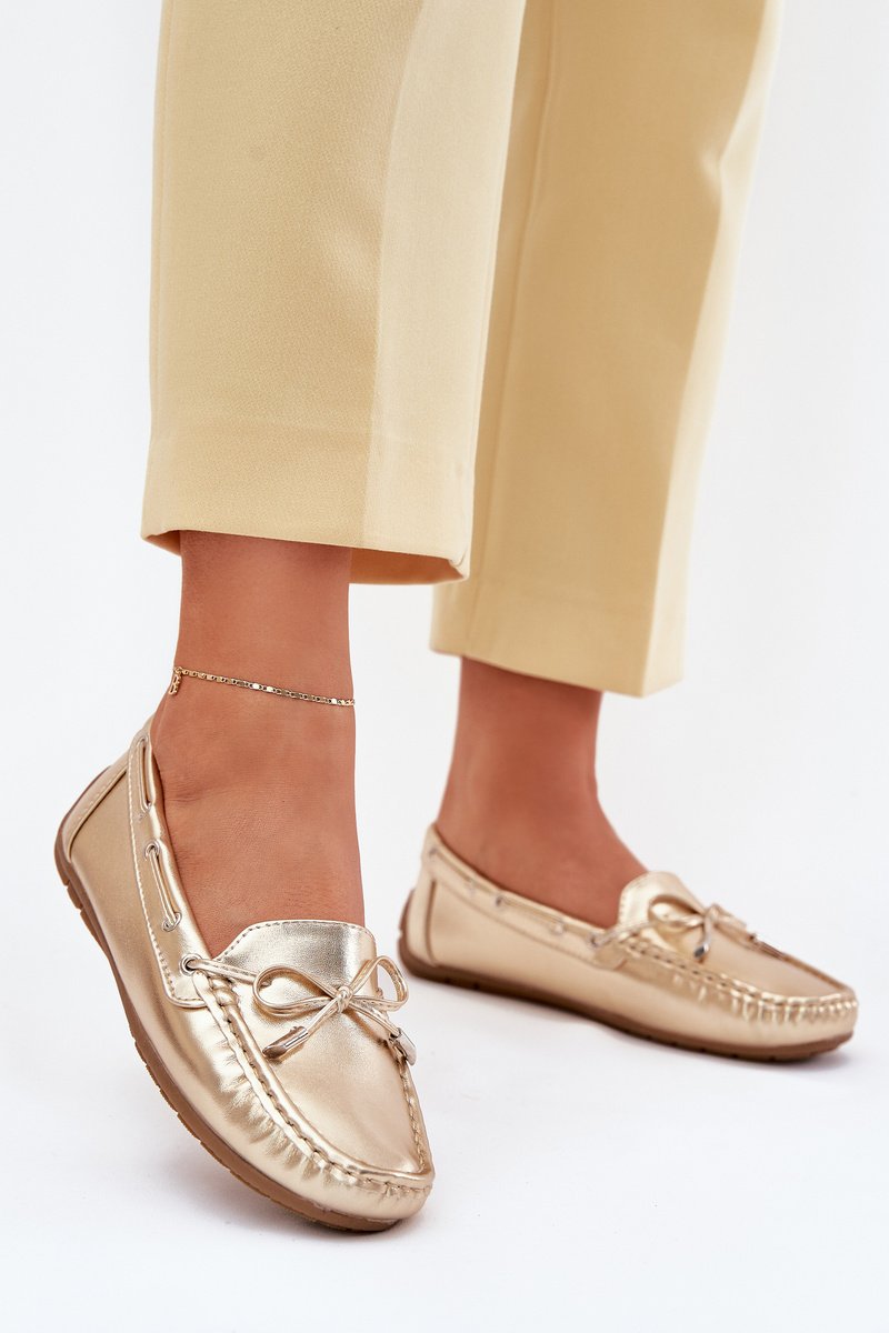 Klasikiniai moteriški mokasinai pagaminti iš eko odos. Šis modelis priekyje turi dekoratyvinę kaspinėlį, o šonais per juos pereina raišteliai. Mokasinai yra ant neslystančio pado. Minkštas eko odos vidpadis užtikrins komfortą avint batus. Papildomai jis yra švelniai perforuotas. Būtinai juos turėkite savo batų kolekcijoje! Renkdamiesi dydį, prašome vadovautis dydžių lentele.