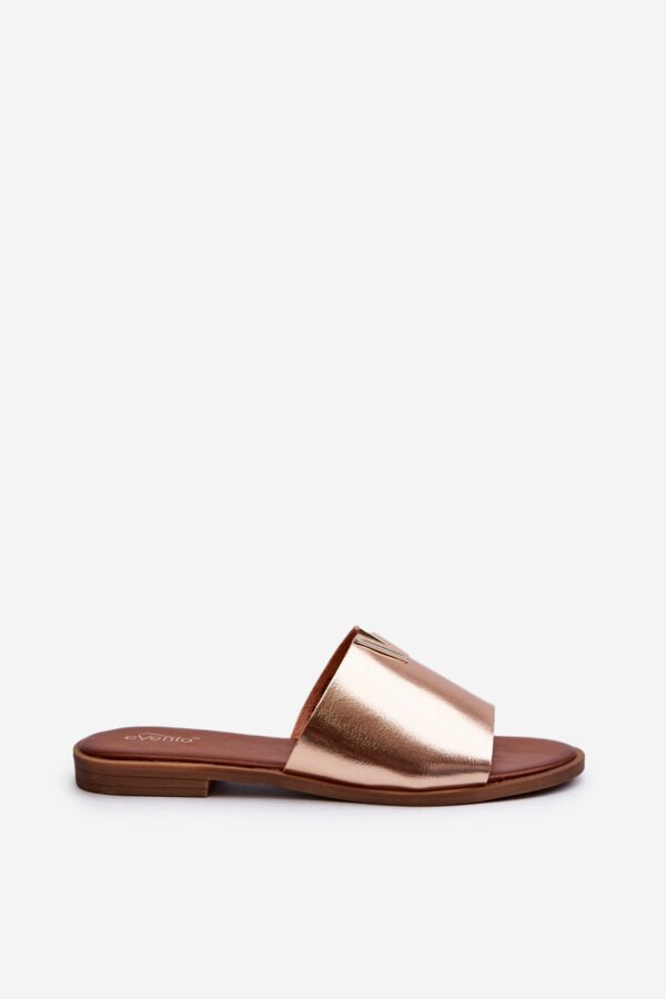 Moteriškos šlepetės pagamintos iš ekologiškos odos. Auksas suteiks Jūsų vasaros įvaizdžiui spindesio. Įleisti ant plokščio kulno. Šis modelis puikiai tiks daugeliui progų! Rinkdamiesi dydį, atsižvelkite į dydžių lentelę.