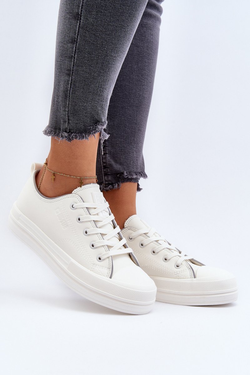 Moterų BIG STAR sportbačiai pagaminti iš aukštos kokybės eko odos. Montuojami ant platformos. Turi klasikinį užsegimą raišteliais ir patogų medžiaginį vidpadį. Sustiprintas priekis ir kulnas. Puikiai tiks prie daugybės skirtingų stilių, todėl verta turėti šį modelį savo garderobe! Renkantis dydį, prašome vadovautis dydžių lentele.