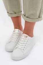 Stilingos ir universalūs moteriški sportbačiai, pagaminti iš ekologiškos odos, yra puikus pasirinkimas kasdieniam įvaizdžiui. Žemas dizainas suteikia lengvumo jausmą ir puikiai derinasi tiek su džinsais, tiek su suknelėmis ar sportiniu apranga. Auksinės detalės priduria elegancijos ir subtiliai pabrėžia modelio moterišką charakterį. Guminė padas užtikrina gerą sukibimą ir patogumą vaikščiojant, o klasikinis raištelis leidžia puikiai pritaikyti prie pėdos. Tai nesenstantis modelis, kuris jungia patogumą su madingu įvaizdžiu. Renkantis dydį, vadovaukitės dydžių lentele.