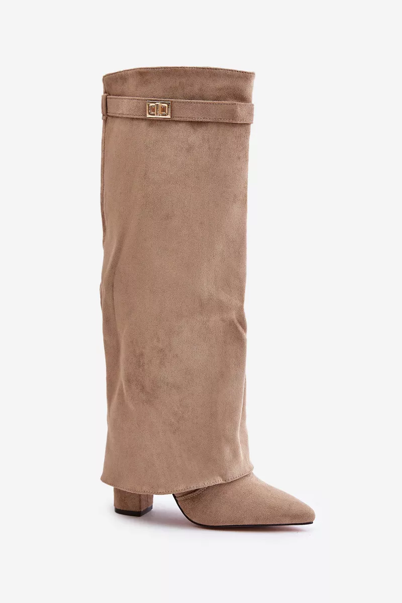 Moteriški ekologiški suede batai su susuktomis kulnais, smėlio spalvos, „Bralise“