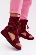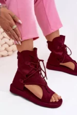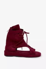 Šios elegantiškos „Damski sandalai Eco Zimna oda“ yra puikus pasirinkimas vasaros dienoms. Pagamintos iš aukštos kokybės ekologinės odos, šios sandalai užtikrina tiek komfortą, tiek stilių. Bordo spalva suteikia prabangos pojūtį, o aukštas padas ir raiščiai suteikia unikalumo.