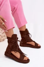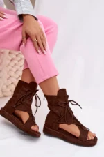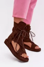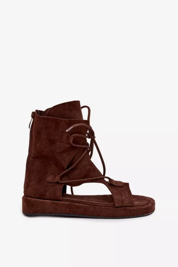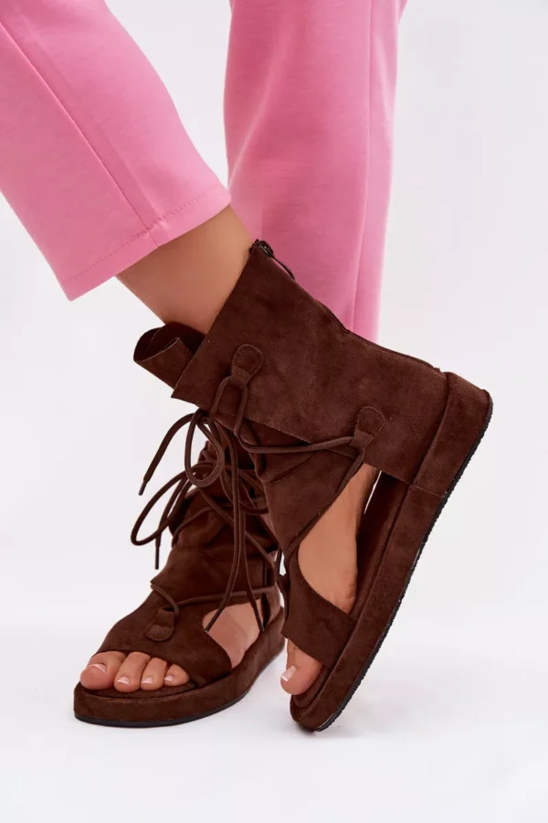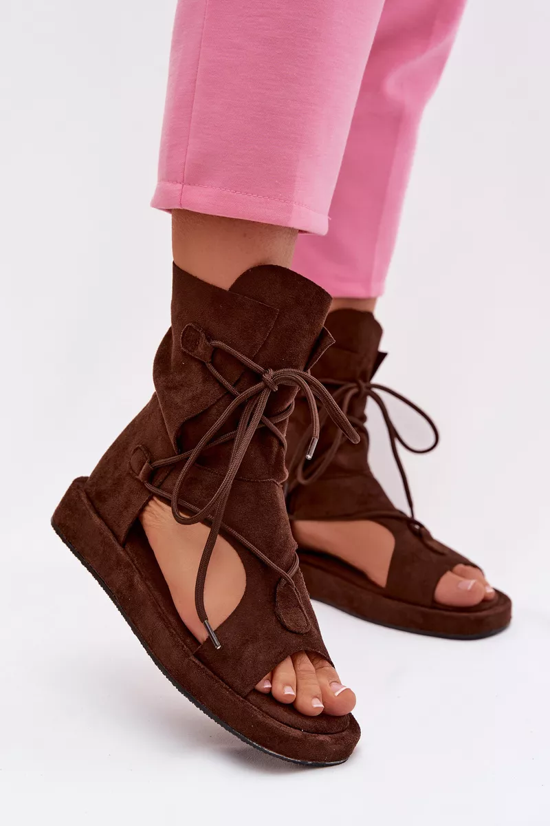 Moteriški ekologiški suede sandalai su viršutine dalimi ir raišteliais, šokolado spalvos „Ferlisse“