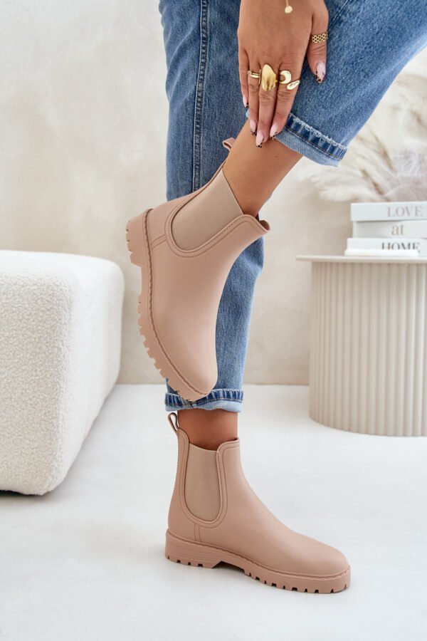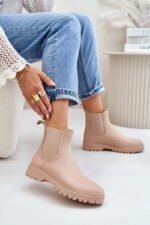 Sieviečių batai nuo lietaus, pagaminti iš patvarios medžiagos. Šonuose turi elastingas intarpus, kurie palengvina apsiavimą ir užtikrina patogų prigludimą prie pėdos. Šie batai, idealūs lietingoms dienoms, puikiai derina funkcionalumą su madinga išvaizda. Renkantis dydį, prašome vadovautis dydžių lentele.