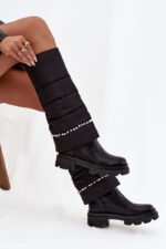 Moteriški aulinukai, pagaminti iš ekoodos ir tekstilės derinio, yra stilingas pasiūlymas šaltesnėms dienoms. Įsispiriamas modelis užtikrina patogumą apsiaunant. Vidus apšiltintas avalynės kilimėliu garantuoja šilumą ir komfortą dėvint. Suapvalinti priekiai pabrėžia klasikinį batų charakterį, o subtilūs karoliukai yra elegantiškas detales, suteikiantis visumai išskirtinio žavesio. Tai madingi ir patogūs aulinukai, puikiai tinkantys kasdienėms stilizacijoms. Renkantis dydį, atkreipkite dėmesį į dydžių lentelę.
