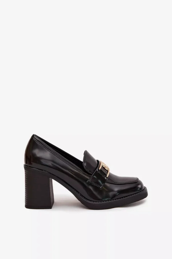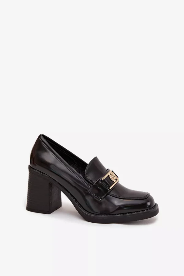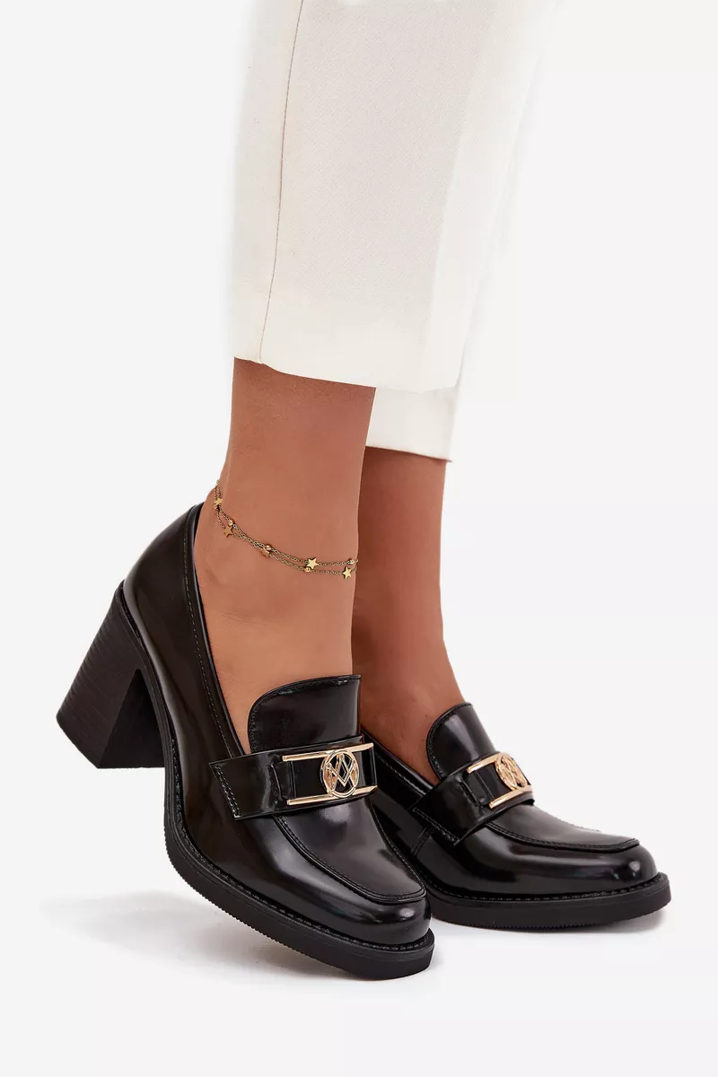 Šie eleganti damų aukštakulniai su auksiniu akcentu yra pagaminti iš aukštos kokybės ekologinės odos. Jie yra universalūs ir puikiai tinkantys įvairiems renginiams. Stabilus kvadratinis kulnas suteikia patogumą ir subtiliai pailgina siluetą. Auksinė detalė priekyje pritraukia dėmesį ir suteikia rafinuotumo bendrajam išvaizdai.