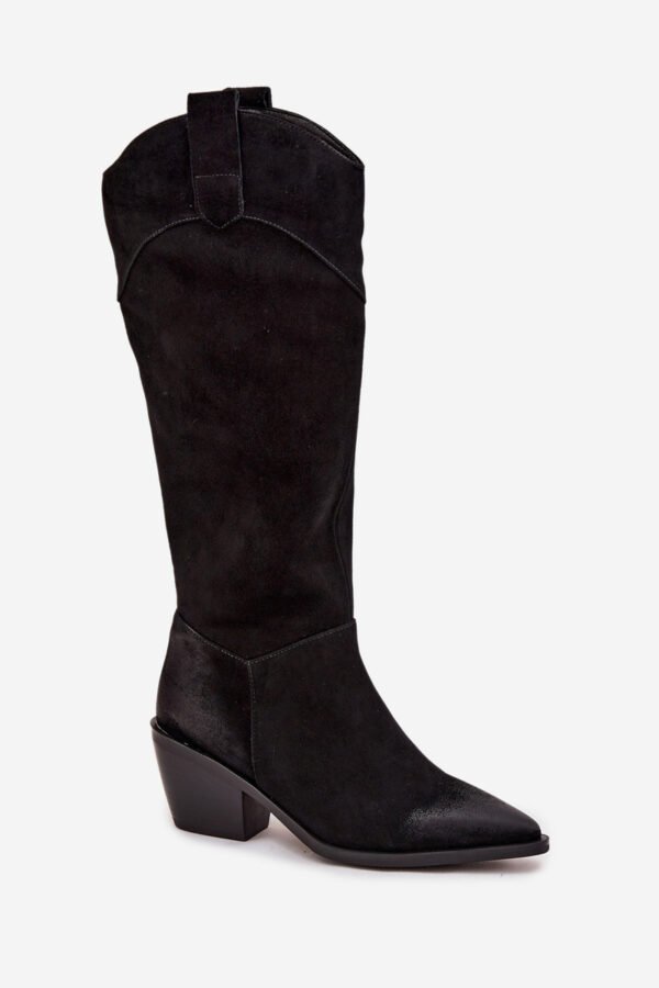 Moteriški Kaubojiški Batai Su Kulnu Iš Eco Suede Juodi Esmira