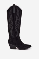 Moteriškos eko zomšos aulinukai su stulpelio formos kulnu yra stilingas pasiūlymas vėsesnėms dienoms. Batviršis siekia iki kelių, suteikdamas klasikinę išvaizdą, o dekoracijos suteikia joms unikalumo. Smailūs priekiai vizualiai lieknina kojas, o įslystamas modelis su papildomu užtrauktuku apačioje užtikrina patogumą ir lengvą apsiavimą. Puikiai tinka tiek elegantiškiems, tiek laisvalaikio deriniams, idealūs žiemos išvykoms. Rinkdamiesi dydį, prašome vadovautis dydžių lentele.
