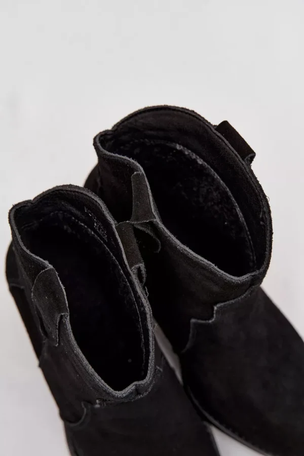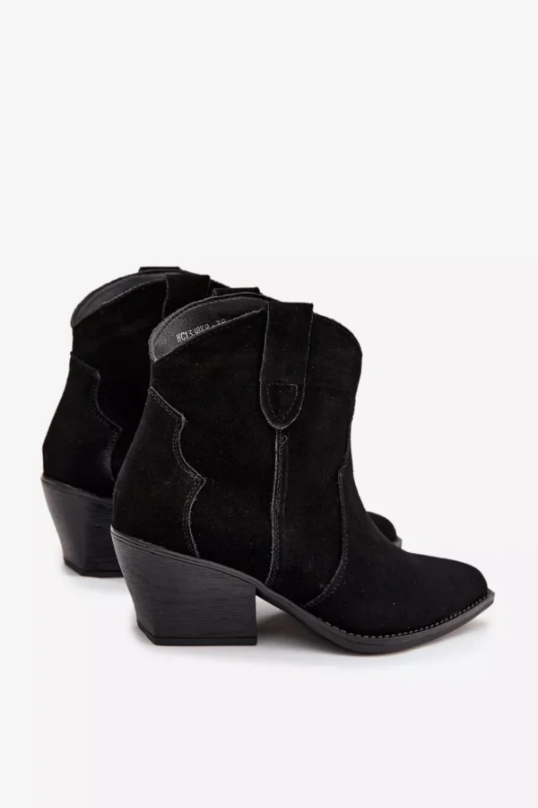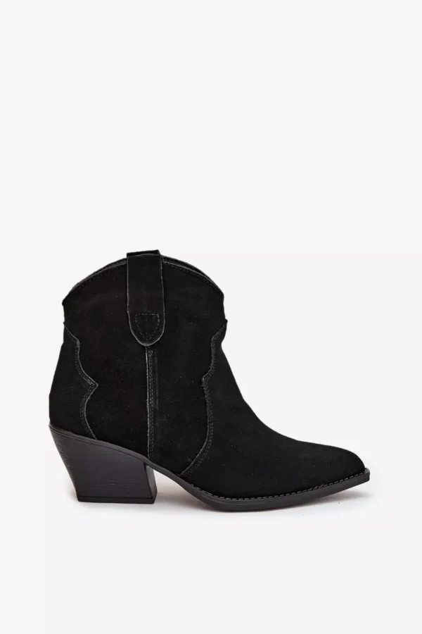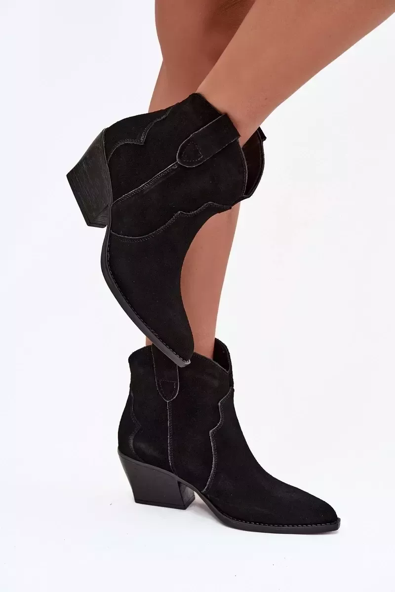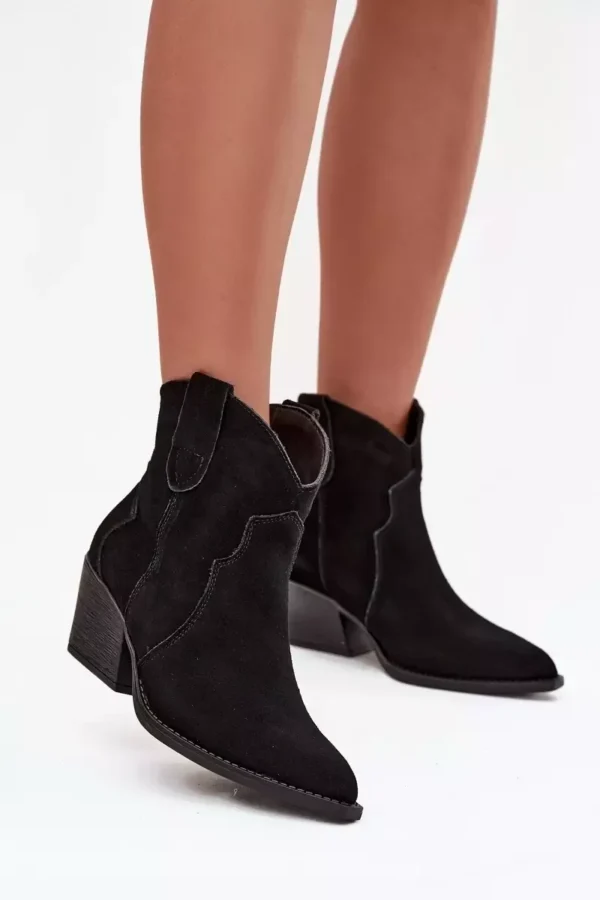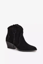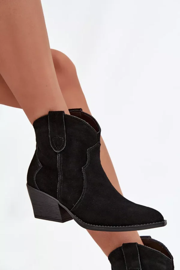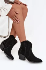 Moteriški botai, pagaminti iš natūralaus zomšos, yra stilingi kaubojiško stiliaus batai, kurie suteiks charakterio kiekvienai jūsų išvaizdai. Įsispiriamas modelis užtikrina patogumą apsiauti, o stabilus, storiau nukirstas kulniukas vizualiai lieknina figūrą ir suteikia išskirtinį žvilgsnį. Smailios noselės pabrėžia moterišką stilių ir primena klasikinius kaubojiškus batus, todėl botai puikiai dera tiek su džinsais, tiek su lengvomis suknelėmis. Įdėklas, apšildytas specialiu aulinio audinio paklotu, garantuoja šiluminį komfortą vėsesnėmis dienomis, todėl šie batai yra ne tik efektingi, bet ir praktiški. Tai pasiūlymas moterims, vertinančioms madingas detales ir kasdienį patogumą – botai puikiai tiks rudens ir žiemos deriniams, suteikdami jiems originalų, vesternišką charakterį.