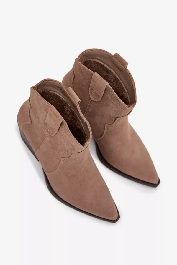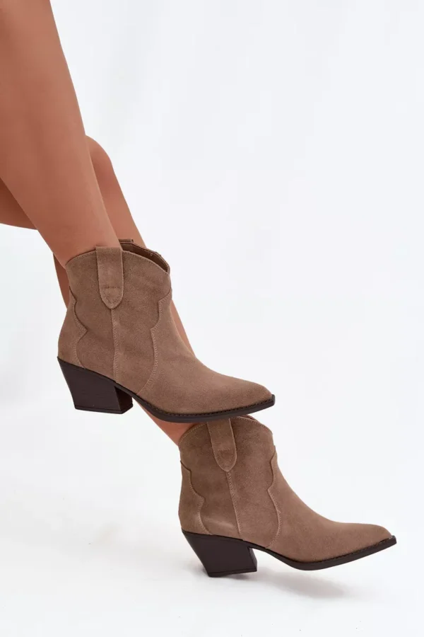 Moteriški botai, pagaminti iš natūralaus zomšos, yra stilingi kaubojiško stiliaus batai, kurie suteiks charakterio kiekvienai jūsų išvaizdai. Įsispiriamas modelis užtikrina patogumą apsiauti, o stabilus, storiau nukirstas kulniukas vizualiai lieknina figūrą ir suteikia išskirtinį žvilgsnį. Smailios noselės pabrėžia moterišką stilių ir primena klasikinius kaubojiškus batus, todėl botai puikiai dera tiek su džinsais, tiek su lengvomis suknelėmis. Įdėklas, apšildytas specialiu aulinio audinio paklotu, garantuoja šiluminį komfortą vėsesnėmis dienomis, todėl šie batai yra ne tik efektingi, bet ir praktiški. Tai pasiūlymas moterims, vertinančioms madingas detales ir kasdienį patogumą – botai puikiai tiks rudens ir žiemos deriniams, suteikdami jiems originalų, vesternišką charakterį.