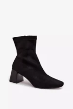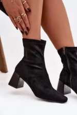 Moterų bateliai iš minkšto ekologiško suede yra puikus pasirinkimas moterims, vertinančioms elegancijos ir komforto derinį. Modelis yra su stabiliu blokiniu kulnu, užtikrinančiu komfortą ir švelniai liekninančiu figūrą. Šone yra praktiška užtrauktukas, kuris palengvina batelių užmaunimą ir nusiėmimą. Šio modelio charakteristinė ypatybė yra siūlės, einančios palei batelių viršų, kurios suteikia jiems modernų, stilingą išvaizdą. Batai puikiai dera su prigludusiais kelnais, suknelėmis ir sijonais, sukurdami moteriškus rudens ir žiemos ansamblius, kurie puikiai tinka kasdieniam nešiojimui ir elegantiškesnėms progoms.