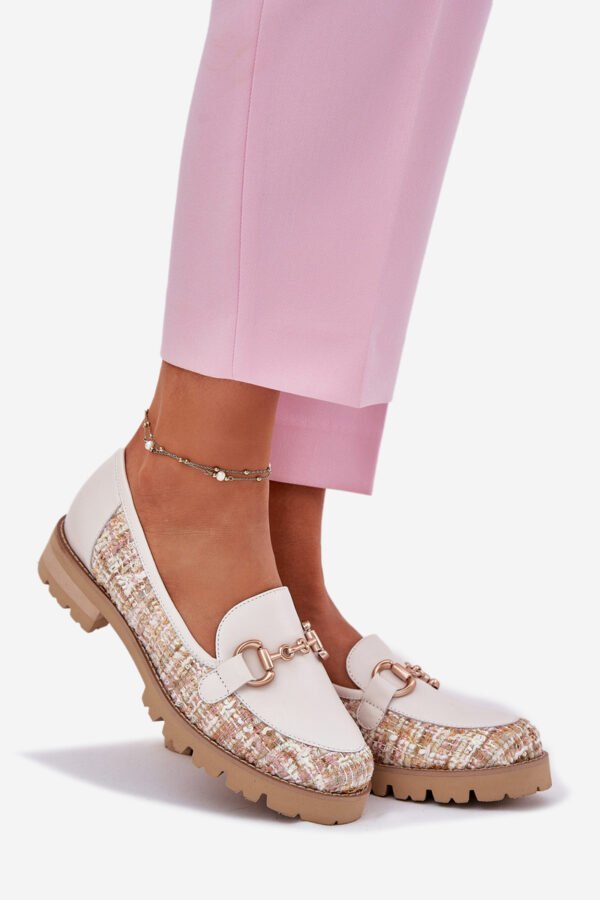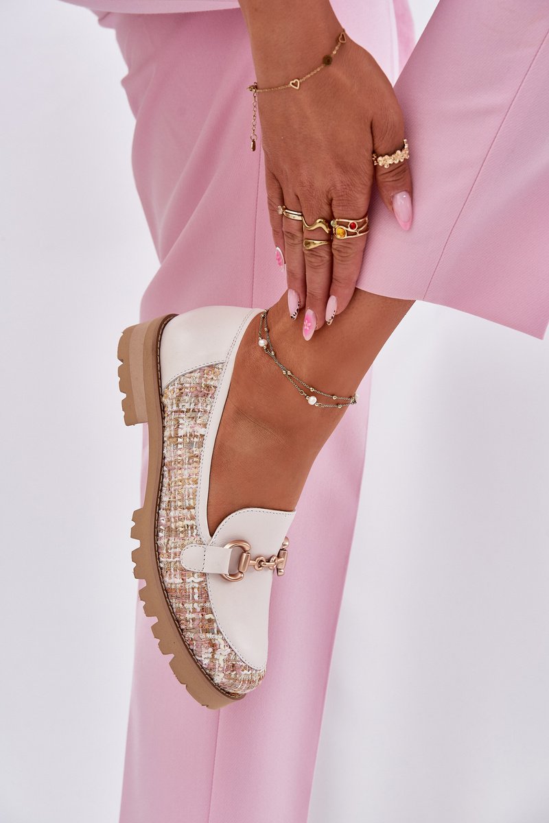 Elegantiškos moteriškos mokasinai, pagaminti iš natūralios odos. Priekyje esantis auksas, dekoratyvinė detalė suteikia unikalaus charakterio ir subtilaus elegancijos. Plokščias kulnas ir apvalios noselės užtikrina patogumą kasdien dėvint, o minkštas odinis vidpadis rūpinasi pėdų komfortu visą dieną. Tai nesenstantis modelis, kuris puikiai papildys tiek formalias, tiek kasdienes stilizacijas. Pasirinkdami dydį, vadovaukitės dydžių lentele.