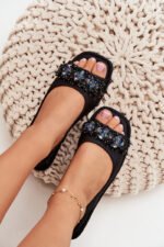 Šios moteriškos juodos plokščiapadės sandalai su kristalais iš S.Barski yra elegantiškas ir patogus pasirinkimas vasaros dienoms. Jos yra pagamintos iš ekologiškos odos, o priekinė dalis yra dekoruota blizgančiais kristalais, suteikiančiais išskirtinį spindesį. Superminkšta padas užtikrina komfortą visai dienai, o paprastas, tačiau stilingas dizainas leidžia derinti šiuos sandalus su įvairiais vasaros drabužių deriniais. Tai idealus pasirinkimas tiek kasdienai, tiek elegantiškiems renginiams.