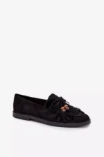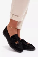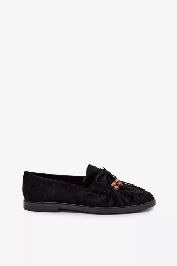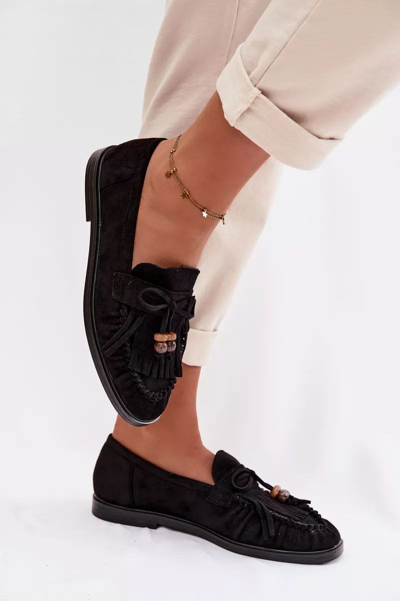 Moteriški ekologiški zamšiniai mokasinai – stilingas pasirinkimas kasdieniam nešiojimui. Batų priekis papuoštas dekoratyvinėmis kutomis ir kaspinu su karoliukais, kurie suteikia visam batui subtilų, moterišką akcentą. Minkšta medžiaga užtikrina komfortą, o klasikinis dizainas leidžia šiuos mokasinus puikiai derinti tiek su kasdieniais, tiek su elegantiškesniais drabužiais. Renkantis dydį, prašome remtis dydžių lentele.