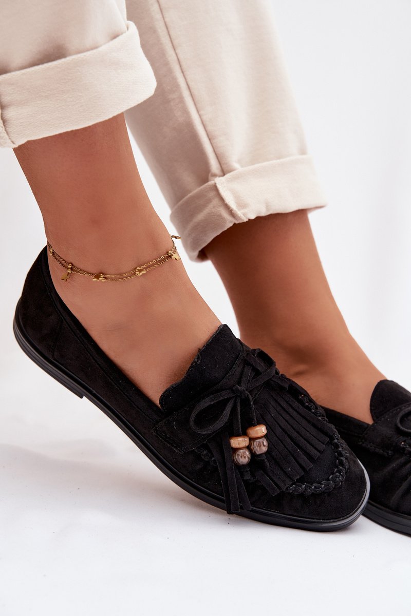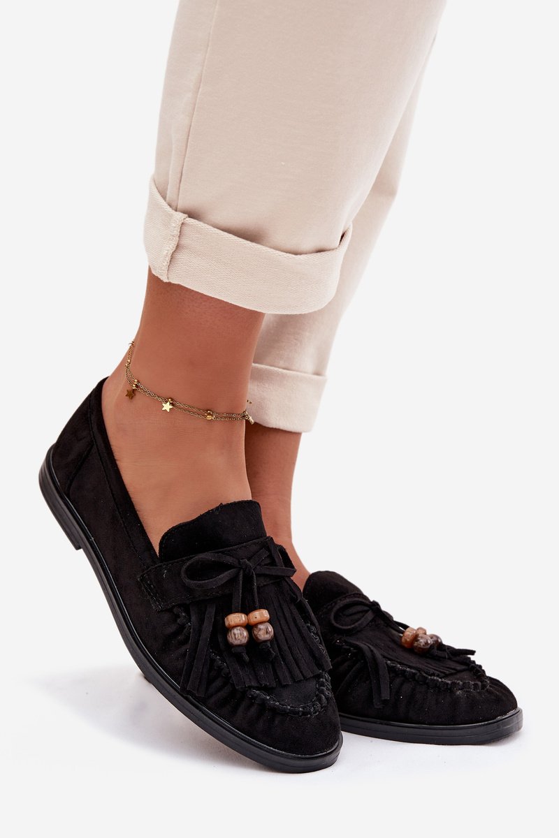 Moteriški mokasinai su kutais ir karoliukais, juodi „Teressa“