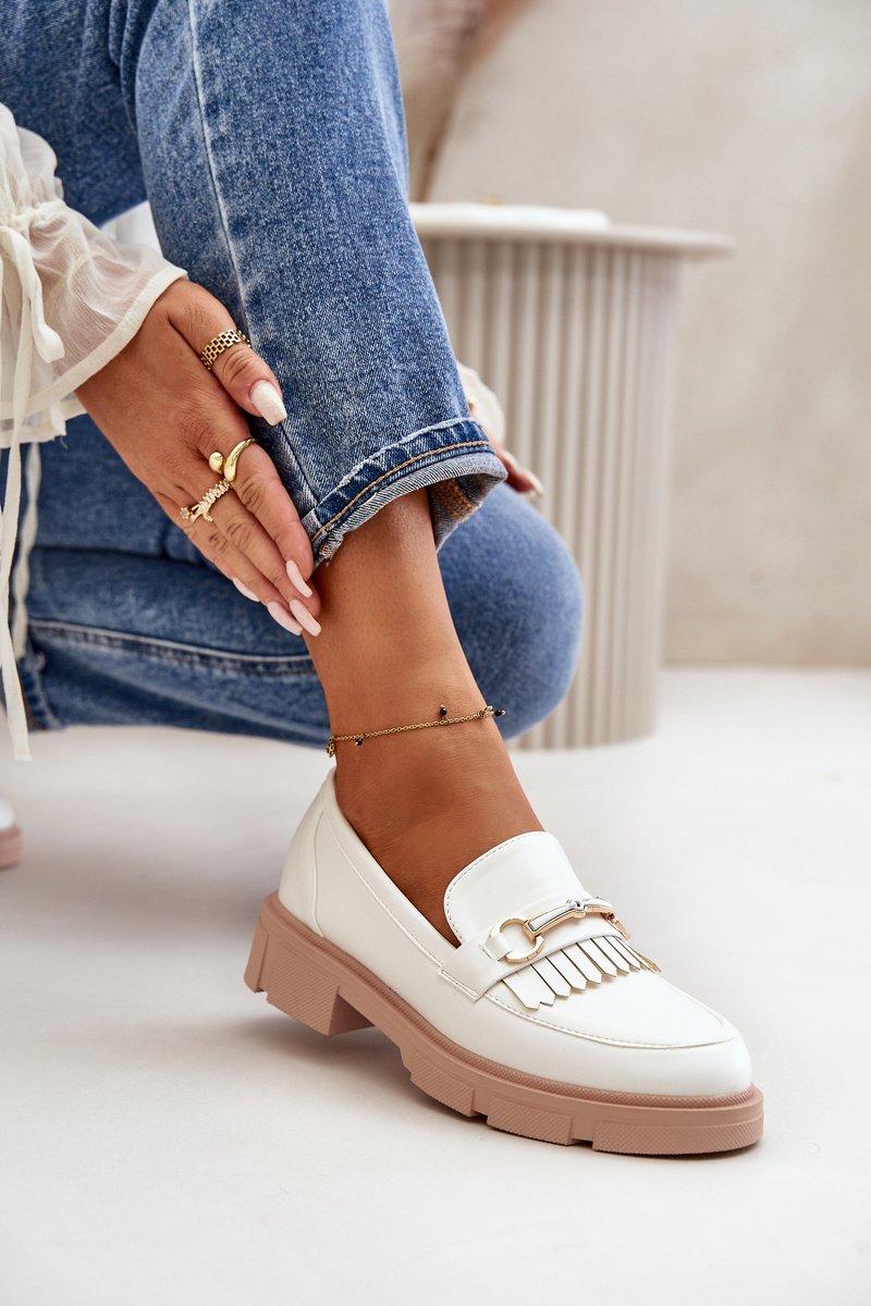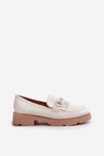 Klasikiniai moteriški mokasinai pagaminti iš eko odos. Montuojami ant plokščio kulno. Priekyje turi aukso spalvos puošmeną. Apvalinti noseliai. Mokasinai turi minkšto eko odos vidpadį. Puikus modelis pavasario-rudens sezonui! Būtinai turėkite juos! Rinkdamiesi dydį, vadovaukitės dydžių lentele.