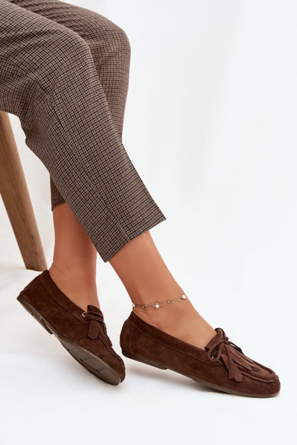Moterų mokasinai, pagaminti iš minkšto ekologiško zamšos, atrodo gražiai ant kojos. Priekyje yra dekoratyvinės kutės ir dekoratyvinė peteliškė, kurios suteikia subtilų, moterišką akcentą. Viduje yra minkšta ekologiškos odos vidpadžiai, todėl mokasinai yra patogūs net ir ilgą dieną. Plokščia padas juos daro idealius darbui, pasivaikščiojimams ar susitikimams su draugais. Renkantis dydį, prašome remtis dydžių lentele.