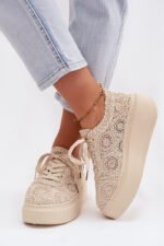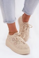 Stilingi moteriški sportiniai bateliai su nėriniuotu viršumi – originalus pasirinkimas šiltoms dienoms. Ažūrinė tekstūra suteikia jiems lengvumo ir vasariškumo, o platforma subtiliai pakelia siluetą, tuo pačiu užtikrindama stabilumą. Minkšta vidpadžiai užtikrina komfortą visą dieną. Šis modelis puikiai tinka kasdieniniams aprangos deriniams, suteikdamas madingą ir originalų akcentą. Renkantis dydį, prašome remtis dydžių lentele.