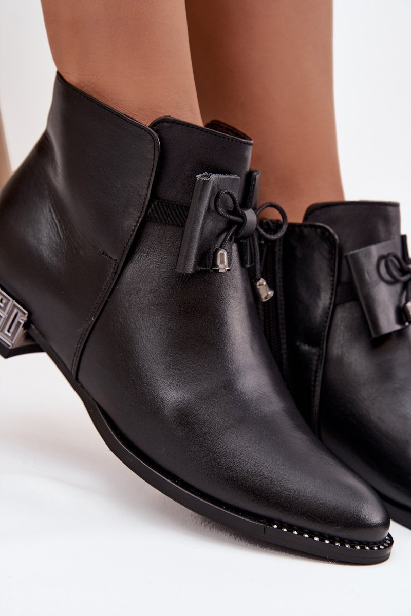 Moteriški aulinukai, pagaminti iš natūralios odos, sujungia eleganciją ir patogumą. Žemas kulnas su dekoratyviniu elementu suteikia elegantišką išvaizdą ir yra patogus dėvėti. Priekyje subtili detalė patraukia dėmesį, suteikdama unikalaus charakterio. Šiltas pamušalas užtikrina šilumą šaltesnėmis dienomis. Tai stilingas modelis, kuris puikiai tiks tiek kasdienai, tiek elegantiškesnėms progoms. Renkantis dydį, prašome vadovautis dydžių lentele.