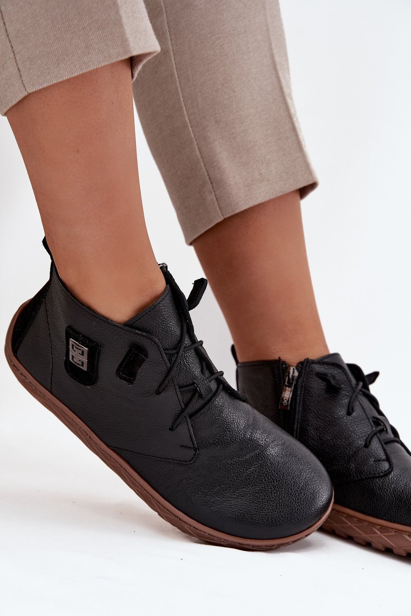 Barefoot tipo pusbačiai moterims, pagaminti iš aukštos kokybės natūralios odos, užtikrina pralaidumą orui ir minkštumą, kad jūsų koja jaustųsi laisva visą dieną. Modelis turi raištelius ir užtrauktuką, leidžiantį greitai ir patogiai apsiauti, o tuo pačiu leidžia idealiai priglusti prie pėdos. Subtilus, dekoratyvinis detalas ant šoninės aulo dalies suteikia elegancijos ir charakterio, todėl jie puikiai tinka tiek kasdienėms, tiek stilingesnėms progoms. Barefoot modelis yra avalynė, sukurta taip, kad užtikrintų kuo natūralesnę pėdos padėtį, palaikant jos laisvą judėjimą. Rinkdamiesi dydį, prašome vadovautis dydžių lentele.