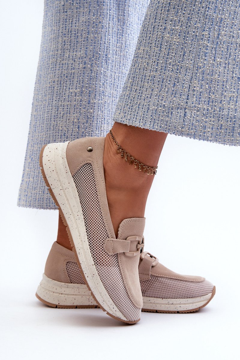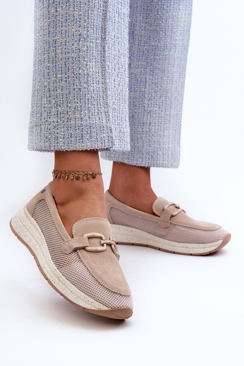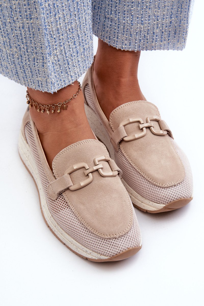 Mėgstate patogumą ir eleganciją? Šie mokasinai pagaminti iš kvėpuojančios medžiagos su subtiliu perforuotu raštu, užtikrina komfortą ir oro cirkuliaciją bato viduje. Dekoratyvinė sagtis ant viršaus suteikia elegancijos, o platforma su subtiliu paslėptu kulniuku garantuoja patogumą vaikščiojant. Šie mokasinai yra puikus pasirinkimas moterims, vertinančioms funkcionalumo ir stilingos išvaizdos derinį. Renkantis dydį, prašome vadovautis dydžių lentele.