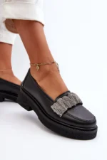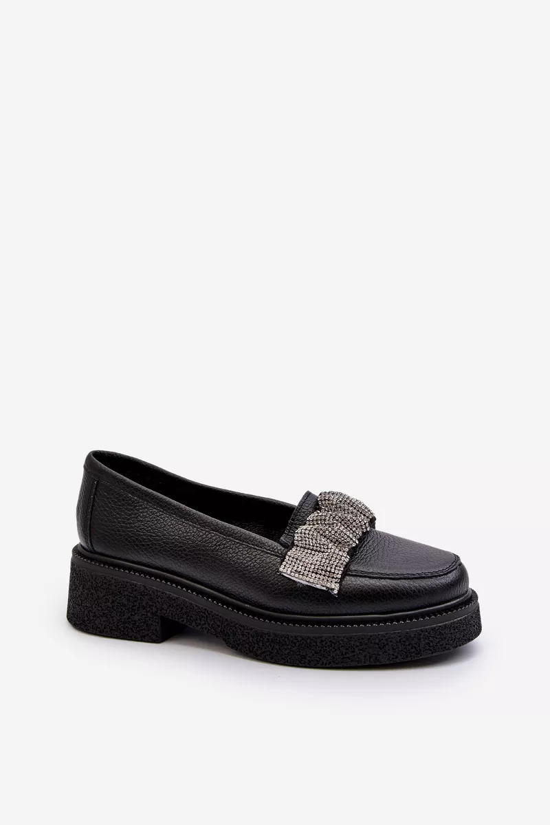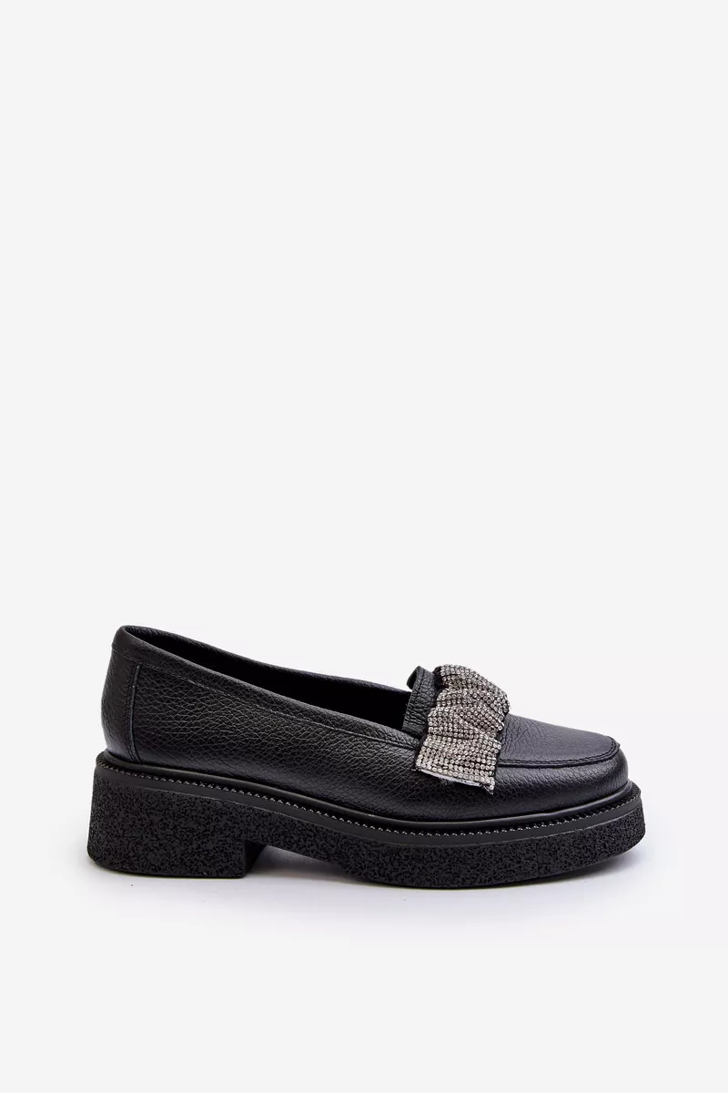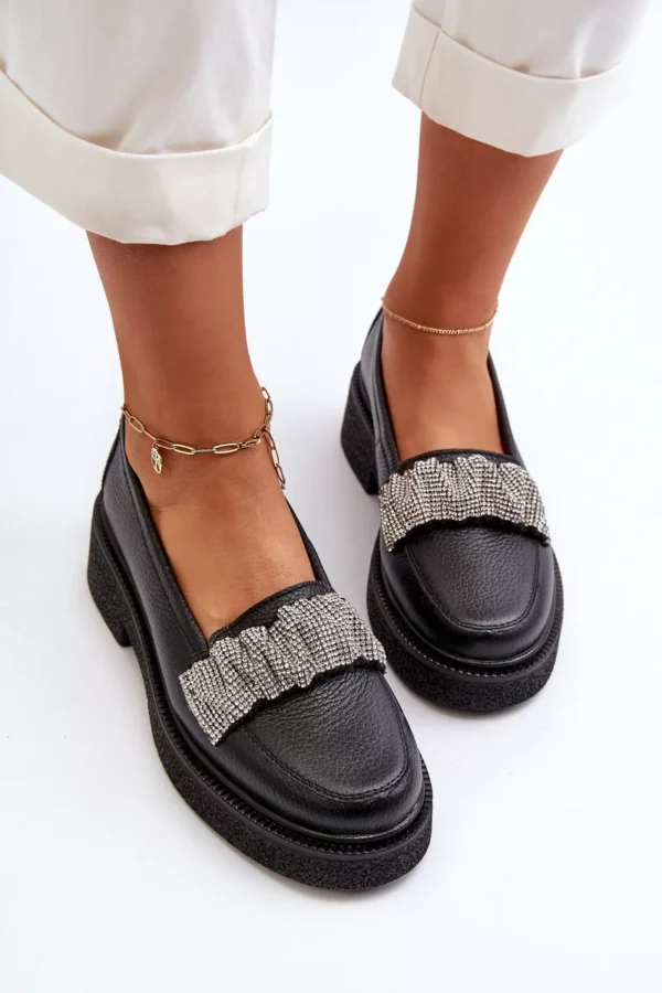 Moteriski mokasinai, pagaminti iš natūralios odos, yra elegancijos ir patogumo derinys. Batų priekis puoštas raukta juostele su mažais cirkoniais. Profiluotas vidpadis užtikrina patogumą ir komfortą avint, o natūrali oda suteikia jiems išskirtinę išvaizdą. Tai puikus pasirinkimas tiems, kurie vertina tiek stilių, tiek patogumą. Pasirinkdami dydį, prašome vadovautis dydžių lentele.