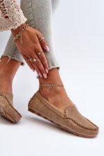 Išsirinkite šias tamsiai smėlinės mokasines ir mėgaukitės jų subtilia elegancija bei nepalyginamu patogumu kasdieninėje veikloje.