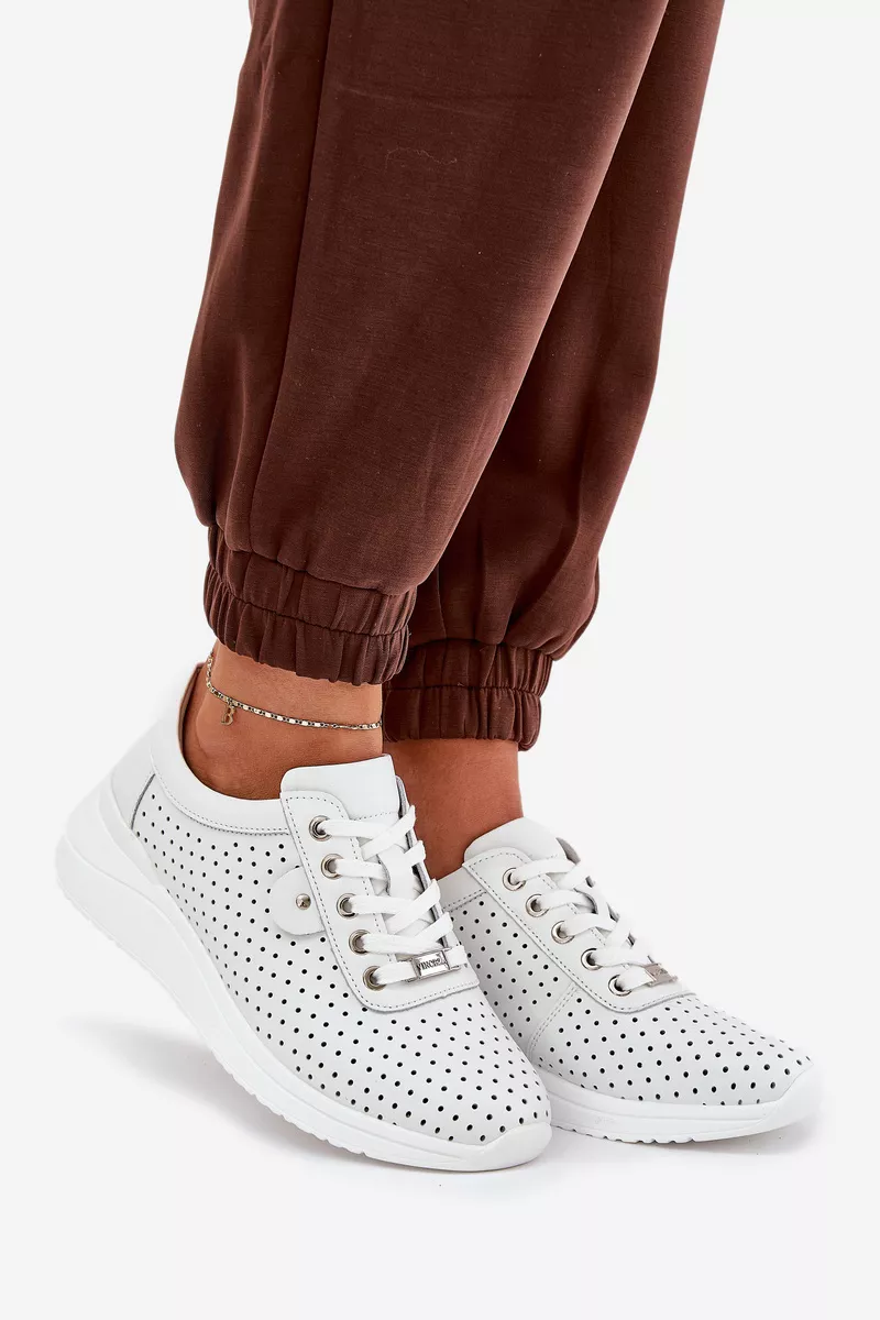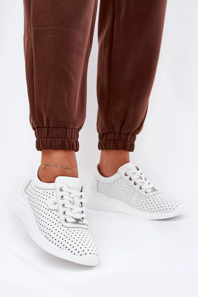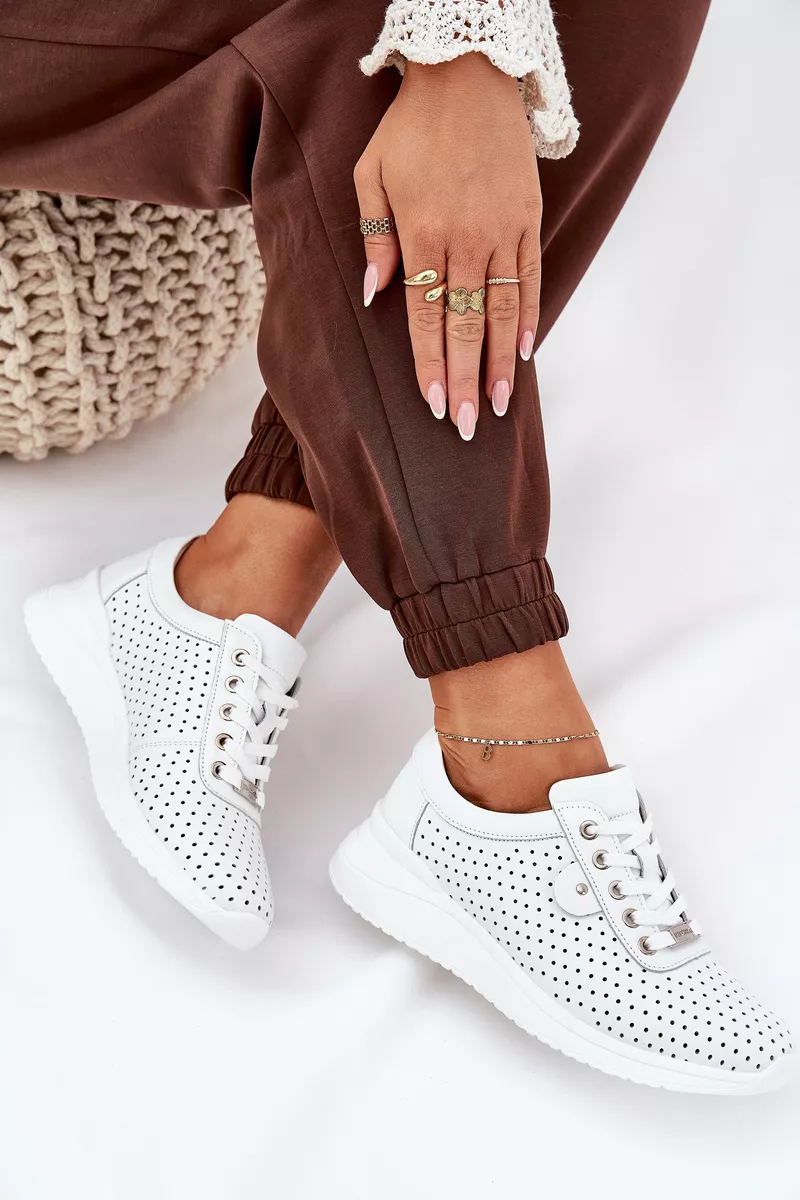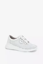 Moteriški natūralios odos sportiniai bateliai yra klasikinis pasiūlymas, tinkantis įvairioms stilizacijoms. Įkelti ant subtilaus platforminio pagrindo, jie užtikrina patogumą ir lengvumą, kartu suteikdami subtilaus ūgio. Minkštas vidpadis rūpinasi komfortu visą dieną. Šie bateliai bus puikus pasirinkimas kasdienai, derinant funkcionalumą su elegantiška išvaizda, idealiai tinka prie laisvalaikio, kaip ir labiau neįpareigojančių stilizacijų. Renkantis dydį, prašome vadovautis dydžių lentele.