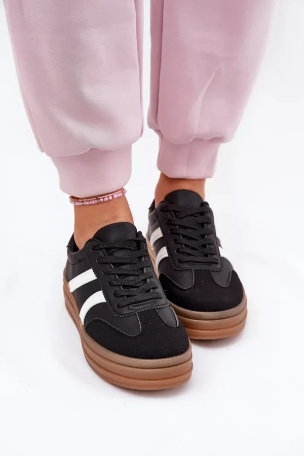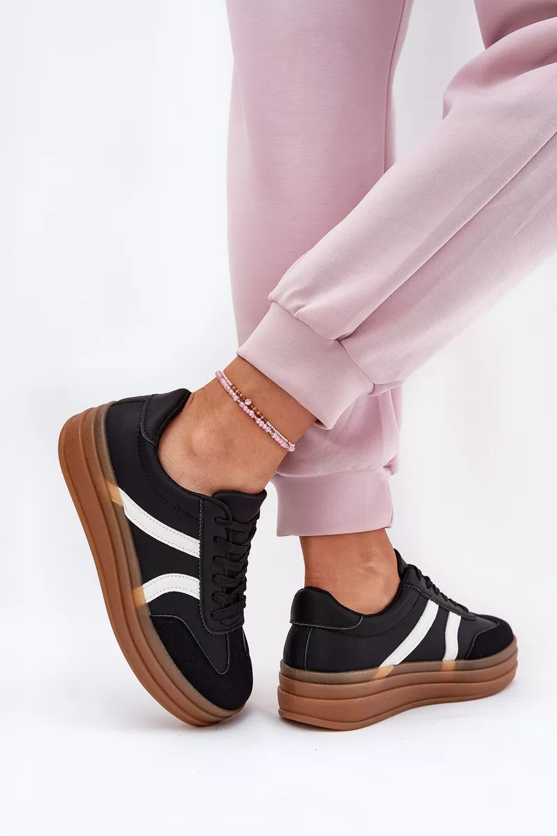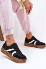 Moteriški kedai pagaminti iš ekologiškos odos. Jie yra ant platformos, kuri vizualiai lieknina figūrą. Suapvalinta noselė garantuoja komfortą visą dieną. Putplasčio vidpadis, padengtas audiniu, užtikrina tinkamą amortizaciją. Šie kedai yra puikus pasiūlymas kasdienėms stilizacijoms, derinant funkcionalumą su modernia išvaizda. Rinkdamiesi dydį, vadovaukitės dydžių lentele.