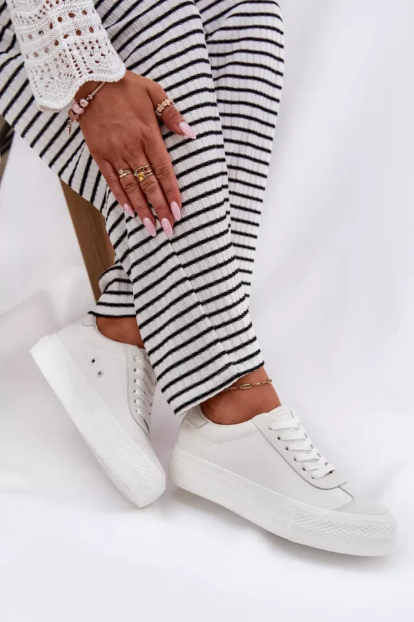 Kiekviena diena reikalauja komforto ir stabilumo, o šie moteriški sportbačiai siūlo būtent tai. Dėl platformos konstrukcijos, jūsų kojos bus apsaugotos nuo nuovargio, o raištelinė sistema užtikrina tobulą prisitaikymą. Apvalus pėdų galas suteikia natūralumo jausmą ir leidžia pėdai laisvai judėti.