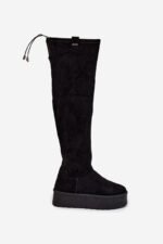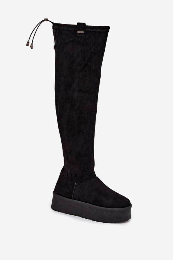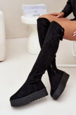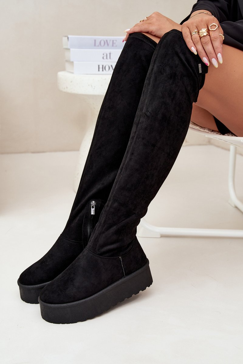 Moteriški batai Big Star yra elegantiškas pasiūlymas vėsesnėms dienoms. Pagaminti iš eko zomšos, ant platformos, jie užtikrina patogumą ir stabilumą, o jų auliai, siekiantys virš kelių, suteikia jiems prašmatnumo. Viršutinės dalies raištelis leidžia geriau priderinti prie kojos. Apšildymas avalynės antklode tik ties pėda. Apačioje užsegimas užtrauktuku. Šie auliniai batai puikiai tiks prie sijonų ir suknelių, suteikdami kiekvienai stiliaus apraiškai moteriškumo ir madingumo. Rinkdamiesi dydį, atsižvelkite į dydžių lentelę.