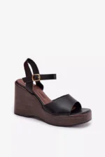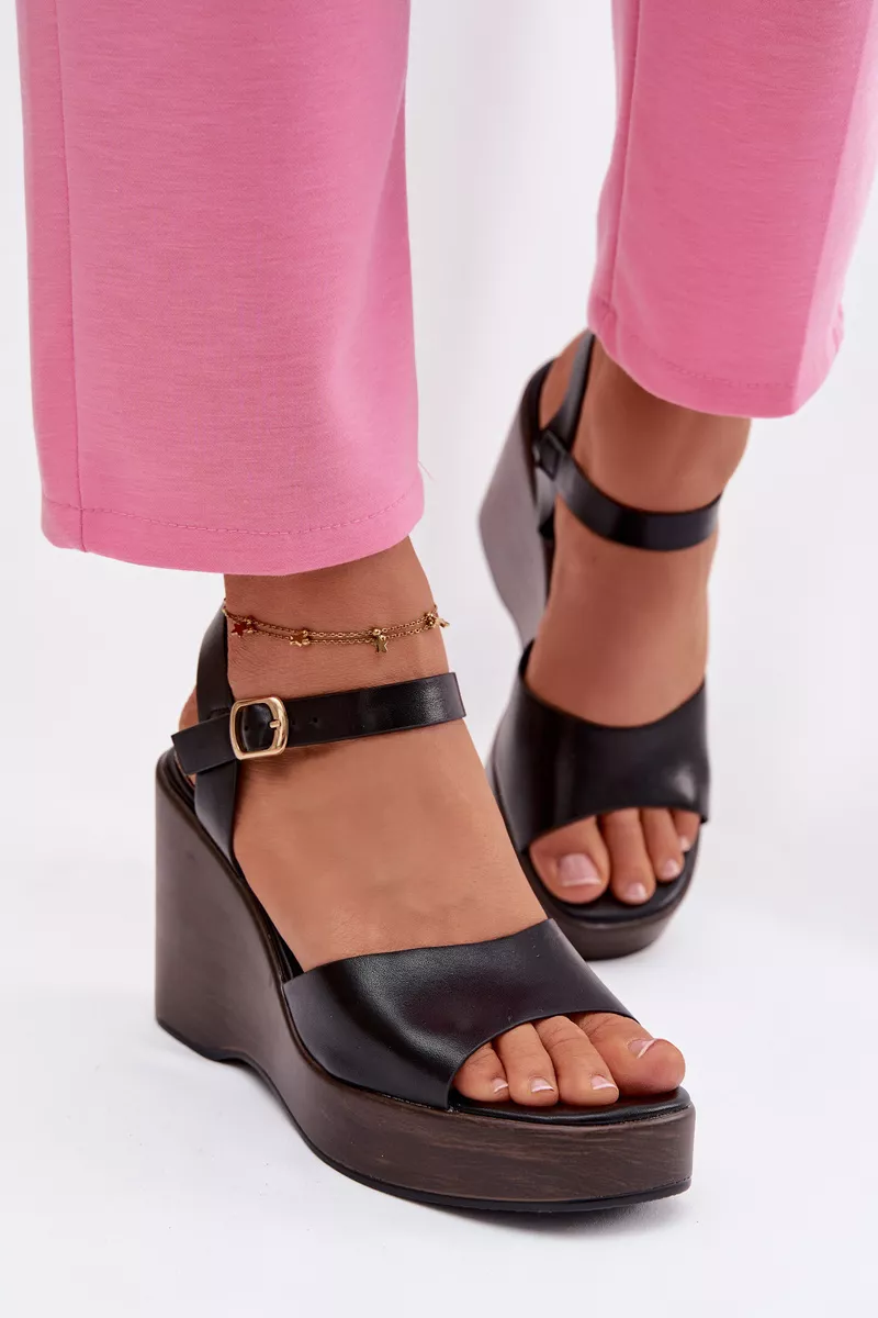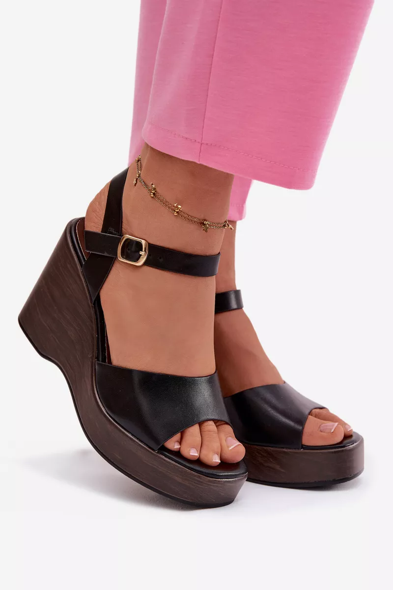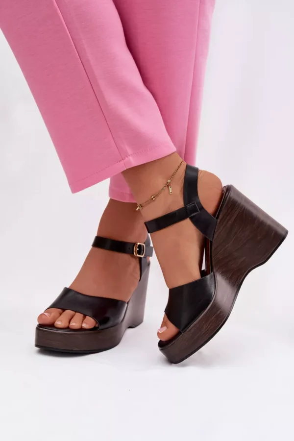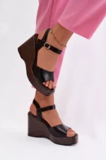 Moteriški platforminiai sandalai iš ekologiškos odos, juodos spalvos, „Parilisse“
