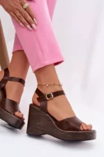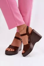 Moteriški ekologiškos odos sandalai – puikus pasirinkimas šiltoms dienoms. Modelis pagamintas su patogiu pleištuotu kulnu, užtikrinančiu stabilumą ir komfortą, o taip pat subtiliai liekninančiu figūrą. Reguliuojamas dirželis su sagtimi aplink kulkšnį leidžia puikiai pritaikyti sandalus ir suteikia moteriškumo. Šie sandalai puikiai tinka tiek kasdieniam aprangos deriniui, tiek vasaros išvykoms. Renkantis dydį, prašome remtis dydžių lentele.