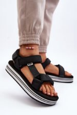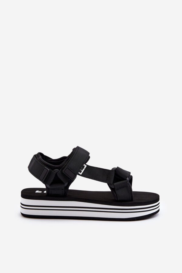 Lee Cooper moteriški sandalai. Pagaminti iš tekstilinės medžiagos. Įmontuota ant putplasčio platformos. Ant dirželio mažas logotipas. Velcro užsegimas užtikrins tinkamą prigludimą prie pėdos. Šis madingas modelis būtinai turi atsirasti Jūsų vasaros garderobe! Renkantis dydį, prašome vadovautis dydžių lentele.