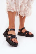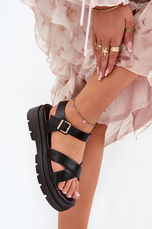 Stilingos moteriškos basutės pagamintos iš eko odos. Sumontuotos ant platformos. Priekyje yra du persipynę dirželiai, suteikiantys unikalią išvaizdą. Su sagtele aplink čiurną, užtikrinančios idealų prigludimą. Puikios šiltoms dienoms, puikiai dera su suknelėmis, sijonais ir kelnėmis. Renkantis dydį, prašome vadovautis dydžių lentele.