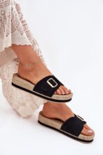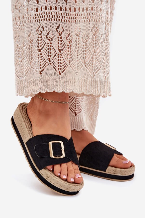 Moteriški platforminiai sandalai su auksine sagtimi Selira Black