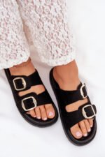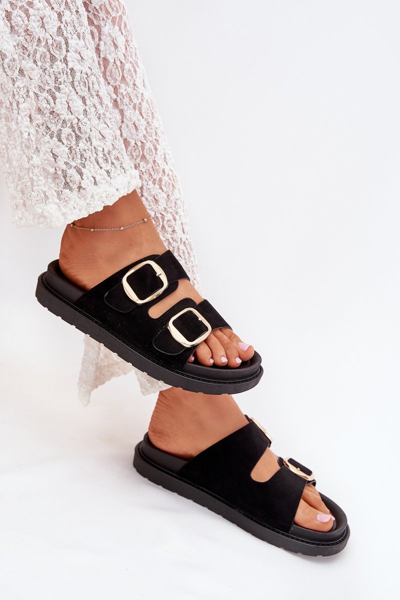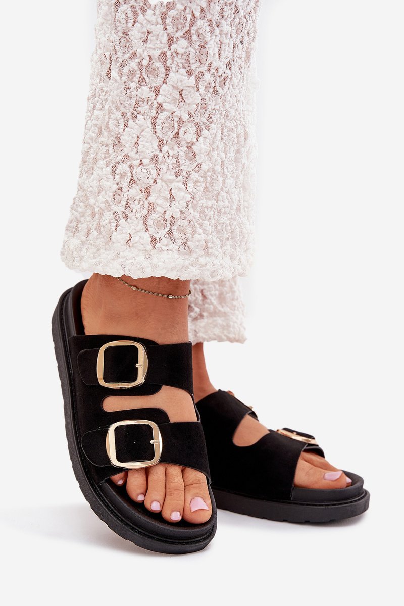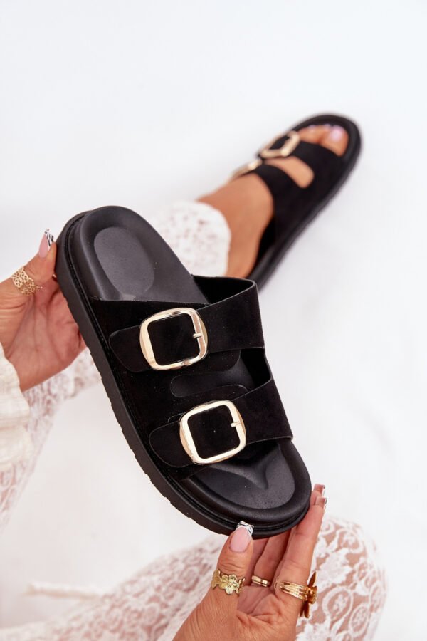Dėvėkite naujausius juodus „Verena“ moteriškus sandalus su platforma ir žėrinčiais auksiniais dirželiais, kurie iškart praskaidrins jūsų dieną. Mėgaukitės aplinkai draugišku zamšadojaus viršumi, kuris ne tik atrodo įspūdingai, bet ir yra pagamintas iš perdirbamų medžiagų, taip padedant išsaugoti mūsų planetą.